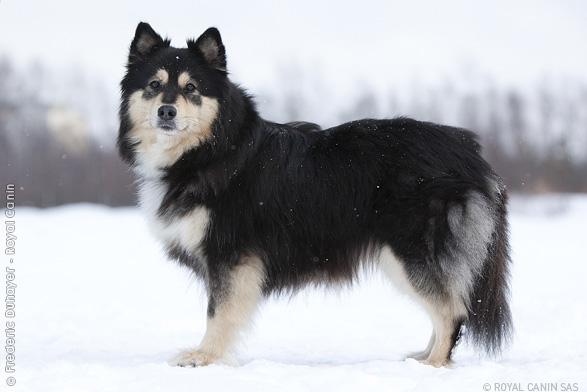 Le Chien Finnois de Laponie résiste aux rigueurs de l’hiver scandinave et participe à la survie de ce peuple nomade, en aidant aux déplacements et à la garde des troupeaux de Rennes.